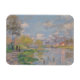 Spring by the Seine by Claude Monet, oil on canvas 1875, is a landscape painting of pedestrians strolling on the banks of the River Seine in Paris, the warm green leaves of budding trees and puffy white clouds in the pale blue sky of a warm, sunny day reflected in the river. Painted in loose, sketchy, rapidly applied strokes of oil colour, the picture captures a relaxed, leisurely moment in the life of the city, with the atmosphere, colour and light under the sun of a spring day. Monet creates a harmonious composition of man amidst nature, using simple shapes and careful colour harmony to evoke an idyllic scene typical of the outlook of the French Impressionists.