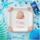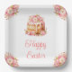 Pretty Easter plates with a cake decorated in frosting and flowers. The words can be changed to suit your own details or requirements.