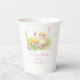 Pretty baby shower paper cup with an adorable chick and pink and yellow tulips. Perfect for a spring or summer baby shower. The words can be changed to suit your own details or requirements