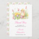 Pretty baby shower thank you card with an adorable chick and pink and yellow tulips. Perfect for a spring or summer baby shower. The words can be changed to suit your own details or requirements