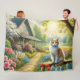 Spring cottage/garden & cat fleece blanket