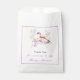Pretty baby shower favour bag with an adorable bird and purple and yellow flowers. Perfect for a spring or summer baby shower. The words can be changed to suit your own details or requirements
