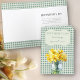 Happy Mother's Day card with a jar of daffodils and country gingham design in green. This spring floral mother's day card design for a special mom has an editable verse inside and your personalized sign off message.