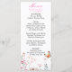 Pretty wedding menu with wildflowers in pink, and cute butterflies. Perfect for a spring or summer wedding. The words can be changed to suit your own details or requirements