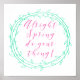 NewParkLane - Poster, with fun quote: 'Alright, Spring do your thing! ' in an elegant, hot pink handwritten script typography in a teal green wreath.