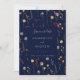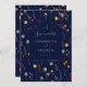 A modern, elegant country save the date with elegant typography on a hand drawn dried flowers, pressed wild flowers pattern on navy blue. With some hints of green, yellow, pink and orange.