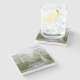 The coasters are gorgeous, a quality feel and heavy weight. They look like a precious archeological find. A rustic stone juxtaposed with a modern floral black and white print. I like the way the print goes slightly imperfect on the cut stone edges giving them a kind-of natural beauty.