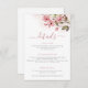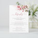 Modern rustic bohemian watercolor botanical cherry blossom wildflowers with foliage bouquets making a chic spring summer garden wedding details invitation insert card with a trendy handwriting calligraphy script and a pastel dusty rose pink and sage green colour palette.