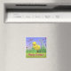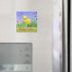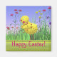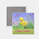 Magnet with my 3d artwork of a little chicken taking a walk in a spring garden. Text says "Happy Easter!"