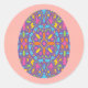 These fancy multicolored decorated egg stickers have a creative boho feel. Stickers can be used for packages, envelopes, craft projects, party favour bags, calendars, or journals. This product has a colour pallet of blue, purple, orange, yellow, pink, and green on a pink background. This illustration is a digital composition of my hand-painted papers. Pairs with Spring Chick and Egg Blank Card.