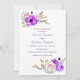 Handwriting typography Spring Engagement Party wildflower themed invitation featuring a bright palette with banana, dark ivy, purple macaron and a vibrant yellow.