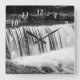 Wall clock featuring a black and white long exposure of the natural spring waterfall at Hodgson Water Mill in Dora Missouri during the Autumn season.