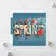 A vibrant Spring Holiday Card surrounded by various flowers colourful lettering spelling "Spring".