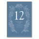 Hand-drawn Spring fleur de lis style elegant framed wedding number with styled spring blooms, leaves, tendrils and little butterflies. In simple classic blue steel grey with white lettering and drawing, personalise with your own names and monogram initials and table numbers. Each number required has to be added to the cart one at a time. Other colours and matching items are available or can be created by request. © Original hand drawing and design by Sarah Trett for www.mylittleedenweddings.com on Zazzle.