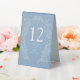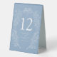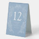 Hand-drawn Spring fleur de lis style elegant framed wedding number with styled spring blooms, leaves, tendrils and little butterflies. In simple classic dusty blue with white lettering and drawing, personalise with your own names and monogram initials and table numbers. Each number required has to be added to the cart one at a time. Other colours and matching items are available or can be created by request. © Original hand drawing and design by Sarah Trett for www.mylittleedenweddings.com on Zazzle.