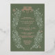 Hand-drawn Spring fleur de lis style elegant framed wedding invitation with styled spring blooms, leaves, tendrils and little butterflies. In sage green, personalise with your own wedding details and monogram initials up the top. Other colours and matching items are available or can be created by request. © Original hand drawing and design by Sarah Trett for www.mylittleedenweddings.com on Zazzle.