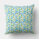 Pillow with bright, cheerful spring dot pattern in blue and green hues.