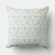 Pillow with bright, cheerful spring flower doodle pattern in blue and green hues.