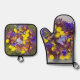 Brighten your kitchen with this lively set! One pot holder and one oven mitt in bright spring colours. Photo of yellow, purple and magenta flowers. Available separately.