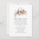 Purple and peach roses and peonies floral bat mitzvah invitations with elegant handwriting typography.