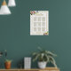 This 9 table Wedding Seating Chart will Make your wedding reception beautiful and help your guests find their assigned tables. Features gold text on a white background with a gold offset squares border and a beautiful spring pastel bouquet of flowers including pink roses, white calla lilies & orchids, and light purple or lavender hydrangea. The text includes the name of the couple and wedding date, and is fully customisable.