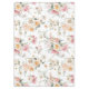 This spring themed tablecloth has a spring tulip flower bouquet all-over pattern on a bright white background.