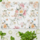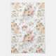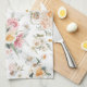 This spring themed kitchen towel has a spring tulip flower bouquet all-over pattern on a bright white background.