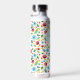 The bottle looks even better in real life. The ice cubes I put in lasts all day! I have my bottle with me all the time. It's summer and having something cold to drink feels amazing. With this bottle I always have something super cold. I have only tried the hot drink once and it lasted a long time as well. The color blue is a navy blue and the white printed on it is vibrant. It printed perfectly. I love my personalized smile water bottle.