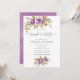 Purple and pink roses and peonies floral brunch and bubbly invitations with accents of coral, plum and sage green.
