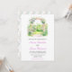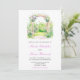 Pretty wedding invitation with a floral arch and pink purple flowers. Perfect for a spring or summer wedding. The words can be changed to suit your own details or requirements