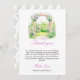 Pretty wedding Thank You Card with a floral arch and pink purple flowers. Perfect for a spring or summer wedding. The words can be changed to suit your own details or requirements