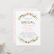 Celebrate the bride in style with this stylish bridal shower invitation featuring watercolor floral wreath garland and a modern typographic layout with pops of pink on a chalkboard background.