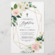 Invite family and friends to your event with this customisable baptism invitation. It features watercolor white and blush pink spring flowers, greenery accents and a faux gold foil geometric frame. Personalise this floral baptism invitation by adding your own details. This watercolor baptism invitation is perfect for spring baptisms and baby girl baptisms.