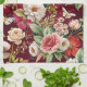 A Colorful Floral Kitchen Dish Towel Design With Spring and Summer Flowers On Red