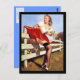 A vintage, springtime pinup girl postcard with a corresponding deep sky blue background. Perfect for a small note to a special friend.