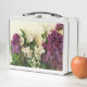 Cute floral lunch box to take on the go. This stainless metallic lunch box features a spring mix of flowers such as lilac, lily of the valley and apple blossoms.