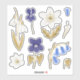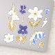 White, blue, and gold illustrated early spring flowers like snowdrop, wood anemone, bluebell, and dog violet. This sticker set can be used for art and junk journals, planners, and diaries. The gold glitter used in this print is simulated, not real glitter. Original artwork by Marketa Stengl.