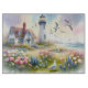 Celebrate the gentle beauty of spring by the sea with this charming watercolor artwork featuring a cozy seaside cottage and elegant lighthouse. Bursting with colorful tulips and wildflowers in the foreground, the scene radiates warmth and whimsy as seagulls soar across a soft pastel sky. A white picket fence and glowing cottage windows invite you into this peaceful coastal retreat. Perfect for spring decor, cottagecore wall art lovers, and coastal home decorating, this dreamy and nostalgic painting captures the serenity of oceanside living in bloom. Display this as part of the Cottage by the Sea Collection to create a light and uplifting atmosphere year-round. AI generated artwork.
