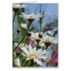 Spring flowers with daisies and pink flowers in the background against the sky.