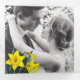 Yellow botanical art square-shaped wedding program with 2 full-page photos. Personalise this wedding trifold program with your own wedding ceremony details. Other matching wedding items available. © Original watercolor daffodils flower hand painting and design by Sarah Trett for www.mylittleedenweddings.com on Zazzle.