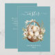 Spring Flowers Eggs Teal Happy Easter Greeting Holiday Card
