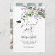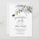 Elegant floral graduation party invitation template card featuring watercolor illustration of white tiger lilies and lavender flowers. There is an illustration of a graduation cap as well. You can add the graduate's photo on the back of the card. Great for both high school and college graduate.