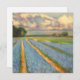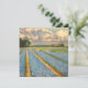 Card 3 of 3 Holland spring flowers field landscape with windmill painting triptych fine art panel 3 of 3 print invitation card with colourful blue hyacinths, tulips and yellow daffodils narcissus flowers and a Dutch windmill.