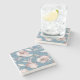 The coasters are gorgeous, a quality feel and heavy weight. They look like a precious archeological find. A rustic stone juxtaposed with a modern floral black and white print. I like the way the print goes slightly imperfect on the cut stone edges giving them a kind-of natural beauty.