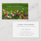 Showcase your business or services with this colorful spring flower border filled with tulips and narcissi with a lush green lawn behind. This vibrant floral design would make an eye-catching personal card too.
