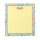 This cute notepad features a pattern of pink, red and yellow spring wildflowers on a pretty aqua blue background. Personalize the monogram with your choice of name and initial.