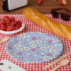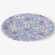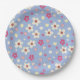spring flowers on blue background paper plate