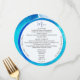 Wedding Menu Card with Snow-white flower on bright blue clearance water background, azure teal watercolor painting, airy coloured spring or summer spotted floral background. White lily botanical elegant floral blossom Wedding Menu Card. Spring Fondness Collection.