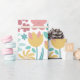 A vibrant and lively pattern showcasing colourful flowers, leaves, and cheerful watering cans. The pastel hues of pink, teal, yellow, and green create a refreshing and uplifting springtime theme.
