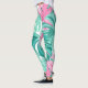 exotic leaves spring botanical garden leggings in teal and pink